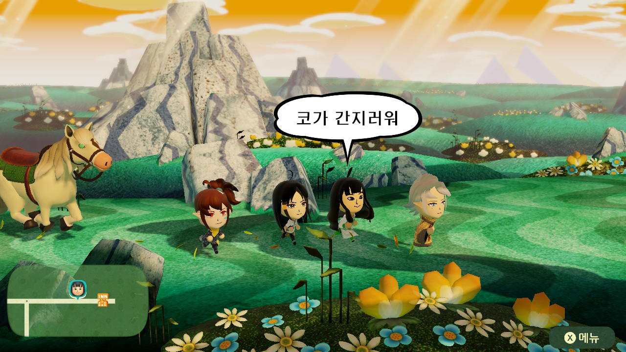 세계관을 설명하는데 딱봐도 마왕인 누군가가 Mii 얼굴을 빼앗고.. 나는 이제 마왕을 물리치러 출발..!
